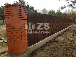 - Забор на ленточном фундаменте из профнастила 65 метров