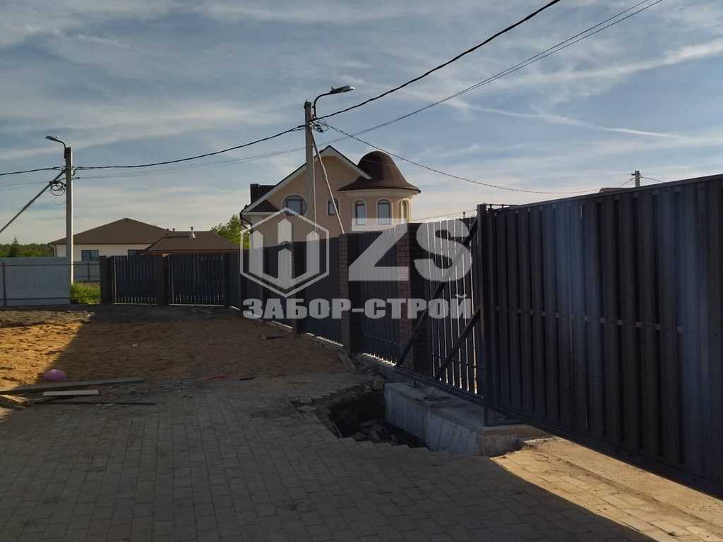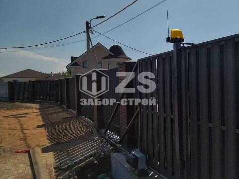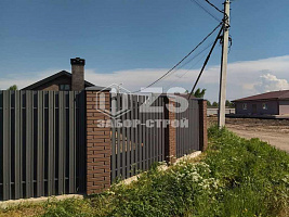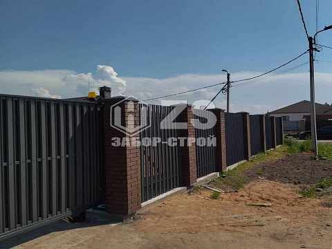 - Забор с кирпичными столбами из евроштакетника 45 метров